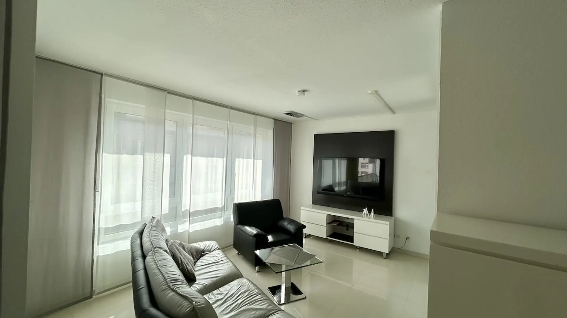 Die Wohnung wurde vor wenigen Jahren für etwa 50.000 Euro aufwendig modernisiert. Hochwertige Steinzeugfliesen, eine moderne Einbauküche mit Mielegeräten sowie ein neues Badezimmer gehören zu den Highlights dieser Modernisierung. Ein Miele-Kaffeeautomat, ein großer, moderner Flachbild-TV und vieles mehr beinhaltet die Komplettmöblierung dieses Apartments. Der ca. 6 qm große Sonnenbalkon mit Blick auf den Kirchplatz ist vom Wohnzimmer begehbar; dieser lädt zum Verweilen ein. Der Wohn- und Schlafbereich ist durch eine verspiegelte Schiebetür getrennt. Der Schlafbereich ist mit einem Modernisiertes 1,5-Zimmer-Apartment mit Balkon in ruhiger Toplage von Bockenheim.