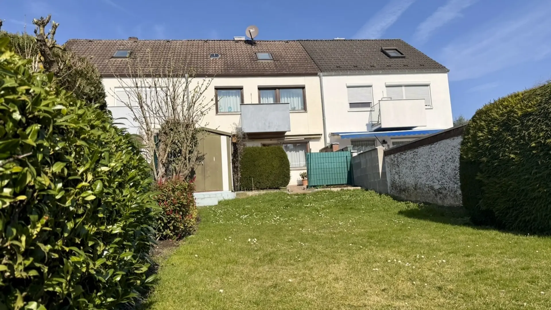Dieses Reihenmittelhaus aus dem Jahr 1972 befindet sich in angenehm ruhiger Lage und bietet mit ca. 107 m² Wohnfläche sowie einem Grundstück von 192 m² ein solides Zuhause mit viel Entwicklungspotenzial. Ergänzt wird das Angebot durch einen zusätzlichen Anteil von ca. 30 m² Gemeinschaftsfläche für Garagenzufahrt, Müllplatz und Garage. Eine eigene Garage im Garagenhof mit vorhandener Stromversorgung gehört ebenfalls zum Objekt und rundet den praktischen Nutzen ab. Im Erdgeschoss empfängt Sie eine klassische Raumaufteilung mit einer älteren Einbauküche sowie einem Gäste-WC aus dem ursprünglichen Baujahr. Das großzügige Wohnzimmer überzeugt durch sein gepflegtes Eichenparkett und bietet direkten Zugang zur gefliesten Terrasse und dem anschließenden Garten. Eine große Sonnenmarkise sorgt hier für angenehmen Schatten an warmen Tagen und lädt zum entspannten Verweilen im Freien ein. Die im gesamten Haus verbauten Holzfenster stammen aus dem Jahr 1991 und sind doppelt verglast. Das Gebäude verfügt aktuell über keine Wärmedämmung. Auch die Elektrik entspricht noch dem ursprünglichen Zustand inklusive Sicherungskasten und bietet somit Raum für individuelle Erneuerungen nach heutigen Standards. Im Obergeschoss stehen Ihnen drei gut geschnittene Schlafzimmer sowie ein Hauptbad mit elektrischem Durchlauferhitzer zur Verfügung – ideal für Familien oder für die Kombination von Wohnen und Arbeiten. Das Dachgeschoss ist bereits für einen Ausbau vorbereitet und bietet mit zwei vorhandenen Flächenfenstern aus dem Jahr 2006 die Möglichkeit, zusätzliche ca. 25 m² Wohnfläche zu schaffen – perfekt für ein weiteres Zimmer, Büro oder Hobbybereich. Das Haus ist voll unterkellert und bietet mit insgesamt vier Räumen viel Stauraum und Nutzungsmöglichkeiten: eine Waschküche, ein Vorratskeller, ein Heizungskeller sowie ein großzügiger Partykeller stehen zur Verfügung. Beheizt wird die Immobilie über eine Ölzentralheizung aus dem Jahr 1988. Diese sollte sicherlich erneuert werden. Insgesamt präsentiert sich dieses Reihenmittelhaus als solide Immobilie mit viel Potenzial – ideal für Käufer, die ihre eigenen Wohnideen verwirklichen und ein Zuhause nach individuellen Vorstellungen gestalten möchten. Besonders für größere Familien bietet dieses Haus vielfältige Möglichkeiten. Vereinbaren Sie noch heute einen Besichtigungstermin und entdecken Sie das Potenzial dieser Immobilie vor Ort!