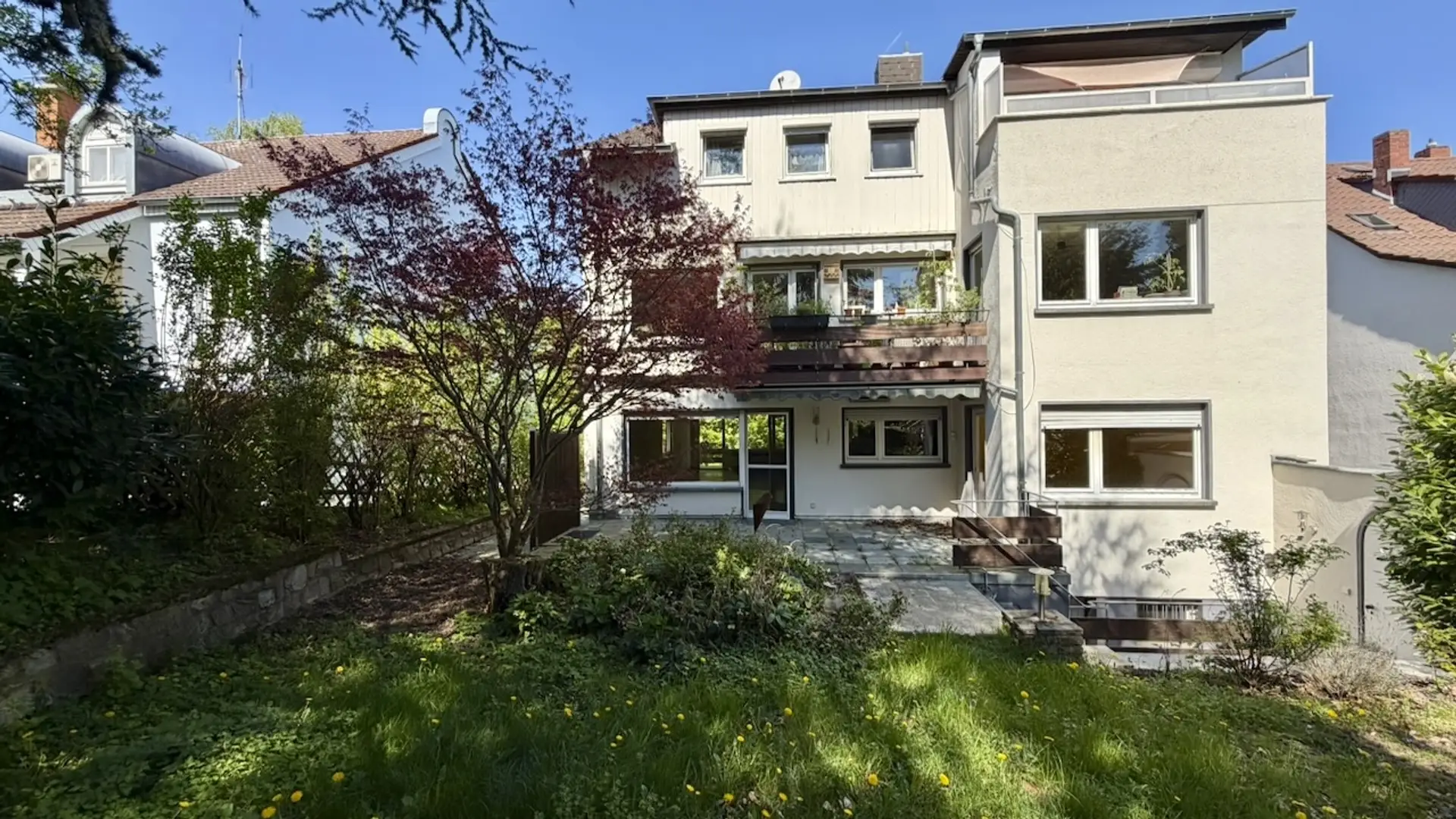 Dieses Mehrfamilienhaus aus dem Jahr 1966 befindet sich in einer äußerst gefragten Lage von Bad Vilbel und umfasst insgesamt drei Wohneinheiten. Die hier angebotene großzügige 3-Zimmerwohnung mit einer Wohnfläche von ca. 121 m² bietet eine seltene Gelegenheit, individuellen Wohnraum nach eigenen Vorstellungen zu gestalten. Das Herzstück der Wohnung ist das sehr große Wohn- und Esszimmer, das viel Platz für individuelle Einrichtungsideen bietet. Ergänzt wird das Raumangebot durch zwei Schlafzimmer, eine separate Küche, ein Badezimmer sowie ein zusätzliches Gäste-WC. Ein besonderes Highlight ist die außergewöhnlich große Terrasse mit direktem Zugang in den parkähnlichen Garten mit altem Baumbestand. Für diesen Garten besteht ein Sondernutzungsrecht, wodurch Ihnen dieser exklusiv zur Verfügung steht – ideal für Naturliebhaber und Ruhesuchende. Hinter diesem privaten Außenbereich schließt sich ein weiterer, gemeinschaftlich nutzbarer Garten an, der mit seinem idyllischen Charakter und einem Bestand an Obstbäumen zum Verweilen und Genießen einlädt. Zur Vorderseite der Wohnung befindet sich zudem ein Balkon mit angrenzender seitlicher Terrasse. Die Wohnung befindet sich insgesamt in einem sanierungsbedürftigen Zustand. Wesentliche Bestandteile wie Elektrik und sanitäre Anlagen stammen überwiegend aus dem Baujahr und sollten im Zuge einer Modernisierung erneuert werden. Die vorhandenen hochwertigen Eichenparkettböden bieten hingegen eine hervorragende Basis und können durch Abschleifen wieder in neuem Glanz erstrahlen. Die Beheizung sowie die Warmwasserversorgung erfolgen über eine Gaszentralheizung aus dem Jahr 2006. Zur Wohnung gehört eine im Haus integrierte Garage, die bequem über das Treppenhaus erreichbar ist. Ein zusätzlicher Stellplatz befindet sich direkt vor der Garage. Weiterhin stehen zwei gemauerte Kellerräume sowie ein gemeinschaftlicher Waschkeller mit eigenen Anschlüssen für Ihre Waschmaschine zur Verfügung. Diese Immobilie bietet Ihnen die seltene Chance, eine großzügige Wohnung in einem idyllischen, parkähnlichen Umfeld nach Ihren eigenen Vorstellungen zu verwirklichen. Überzeugen Sie sich selbst von diesem besonderen Angebot und vereinbaren Sie noch heute einen Besichtigungstermin mit unseren Beratern!